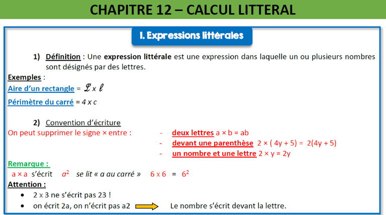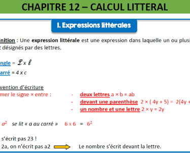 CHAPITRE 12 - CALCUL LITTERAL